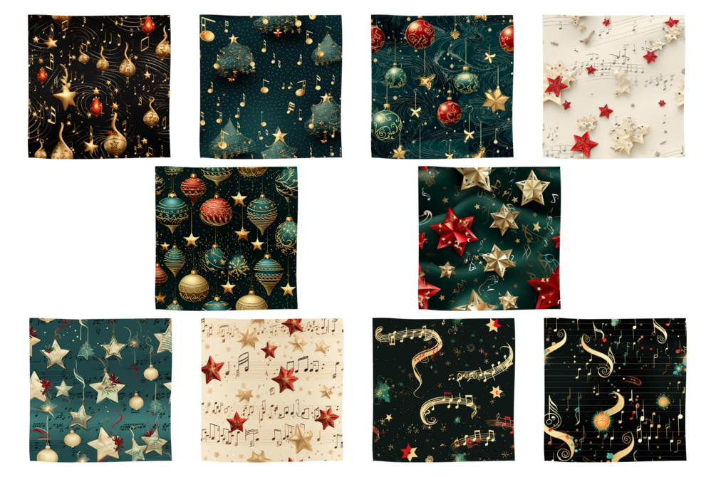 Christmas Musical Notes Vintage 3D Xmas Paper