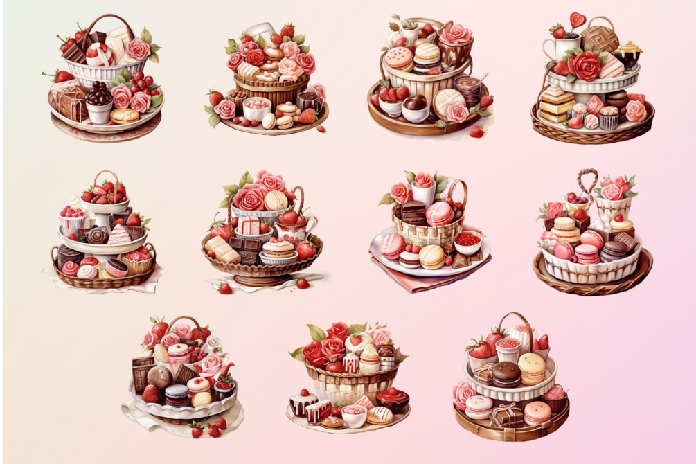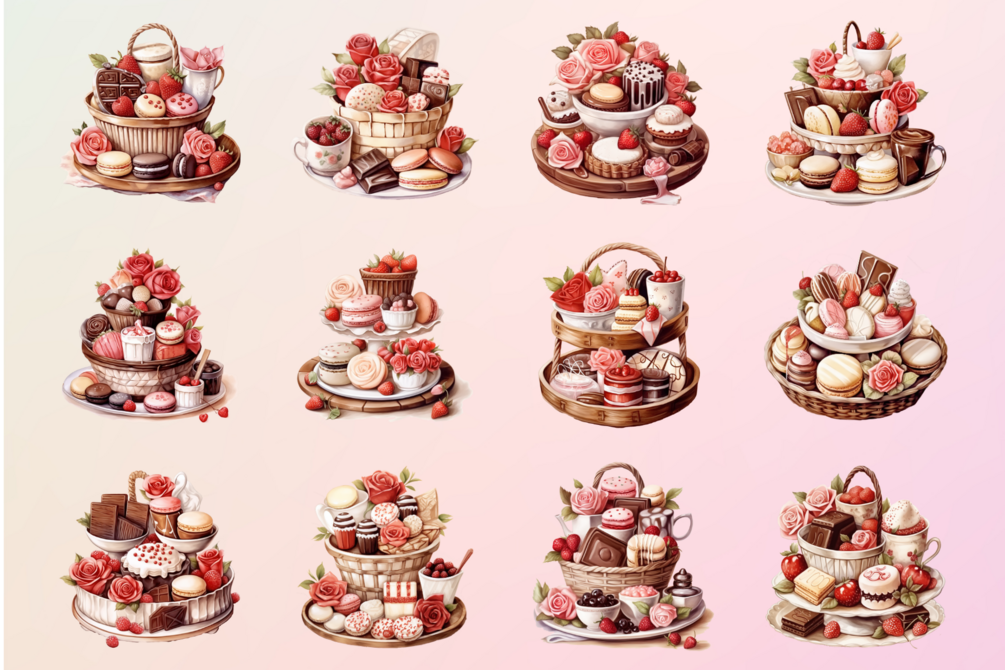 This bundle includes 23 Dessert Valentine Clipart in PNG format with transparent backgrounds, making it easy to add them to your designs without any hassle. The files are high resolution, so you can scale them up or down without losing any quality.