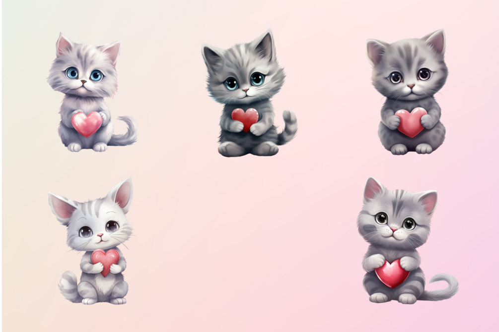 This bundle includes 29 Valentine Cat Clipart in PNG format with transparent backgrounds, making it easy to add them to your designs without any hassle. The files are high resolution, so you can scale them up or down without losing any quality.